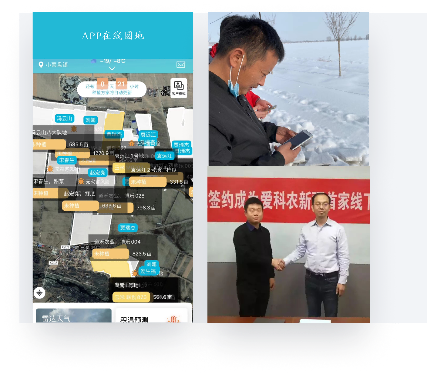但是小贾以前没有种过这么多地,经验不足,即使把经验丰富的父母接过来帮忙也是手忙脚乱。之后,小贾找到爱科农,咨询种植管理的方法,通过不断的沟通学习,才逐渐步入正轨。